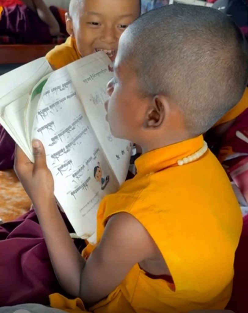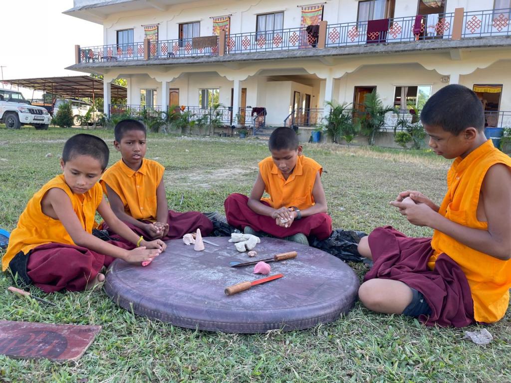 Everyday: Young monks at the Odiyana Children’s school study reading, writing, art and rituals in Tibetan. They also engage in all other sorts of Dharma activities including prayers and meditation. Students follow a well established schedule, starting from 6 in the morning till 8PM led by the head teacher Loppon Phurpa Dorjee from Namdrolling Monastery and our resident teachers: Lama Ngawang, Lama Jurmey and other visiting teachers.